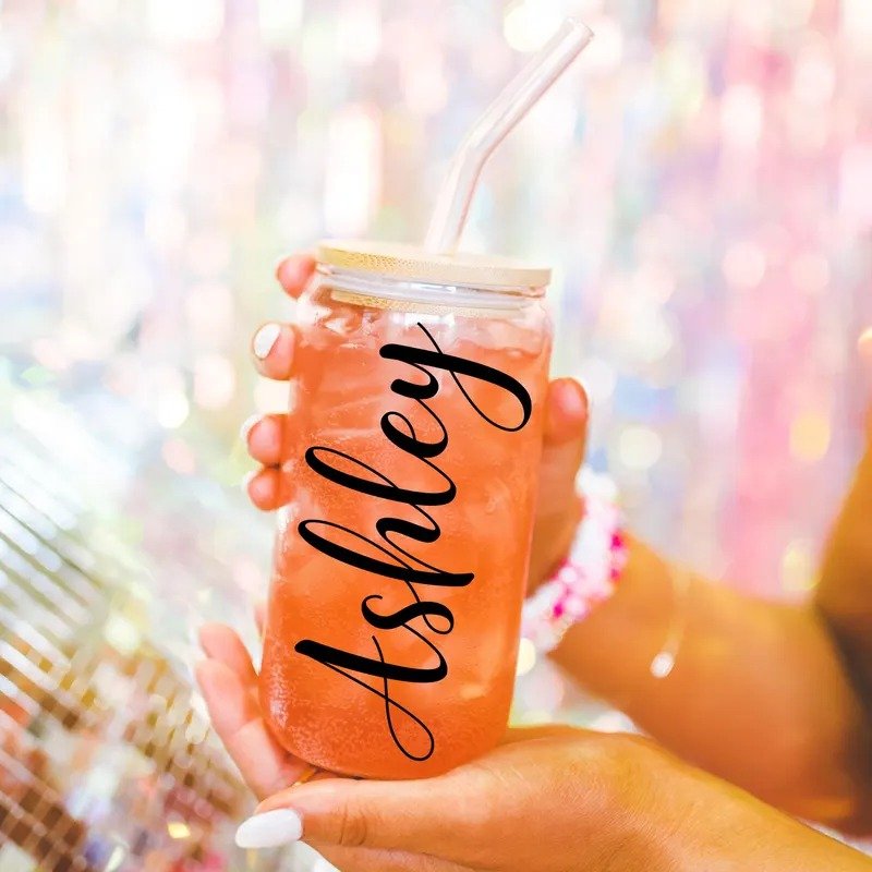 Sip in Style with our 16oz Personalized Iced Coffee Cup — a trendy beer can–shaped glass with a straw that turns every drink into a statement. Customize it with your name or a funny message for a unique touch. Perfect for iced coffee, beer, soda, or cocktails, this durable, high-quality glass is ideal for parties, bachelorette events, or everyday use. Hand wash only for long-lasting shine. A fun and practical gift for friends and family, this personalized cup makes every sip special!